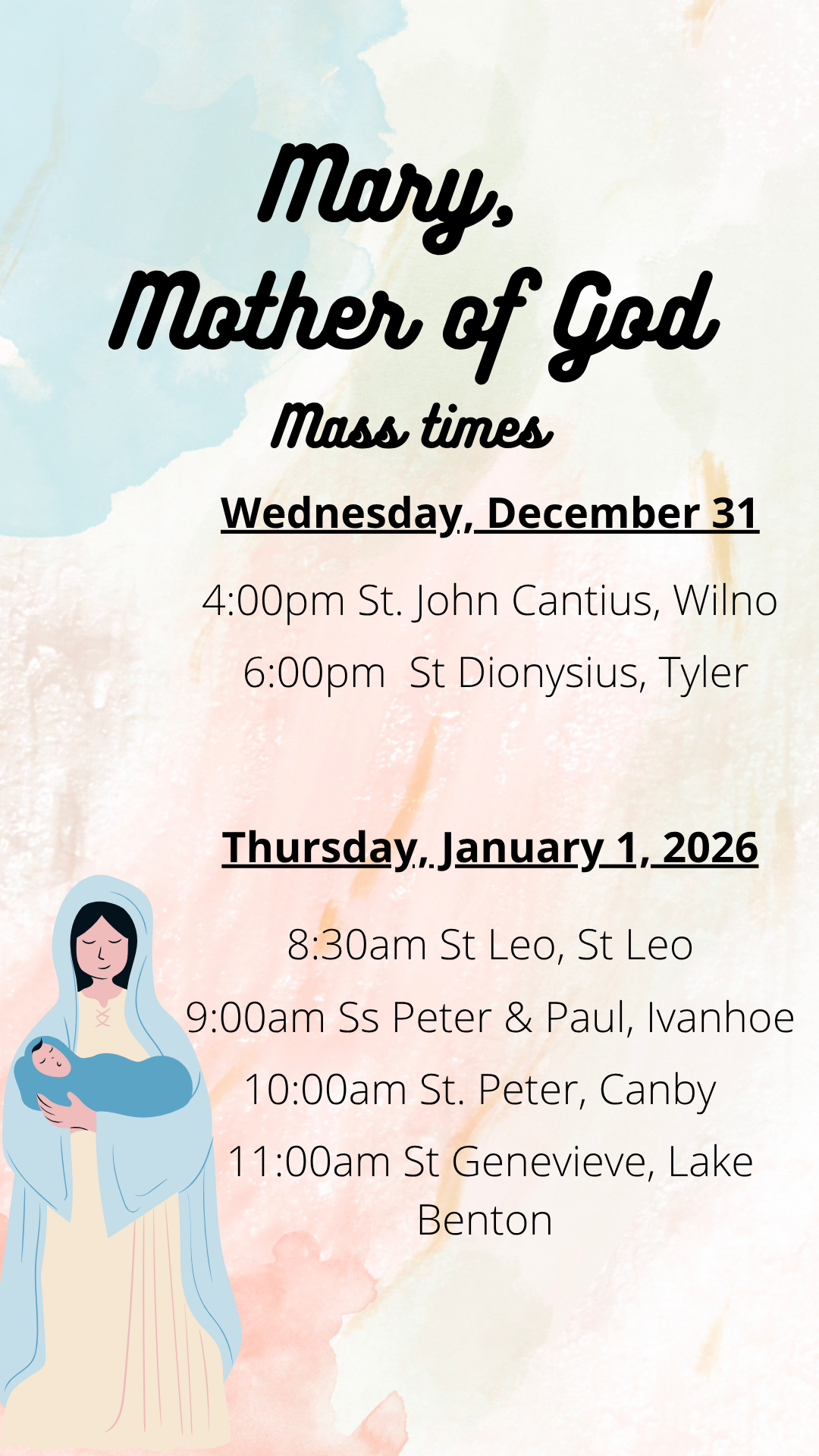 We are a welcoming Catholic community called by God to live out the message of Christ in love and service to all people. We serve the parishes of Ss. Peter & Paul, Ivanhoe – St. Genevieve, Lake Benton – St. Dionysius, Tyler – St. John Cantius, Wilno - St. Peter, Canby - St. Leo, St. Leo and St. Peter Catholic School, Canby.